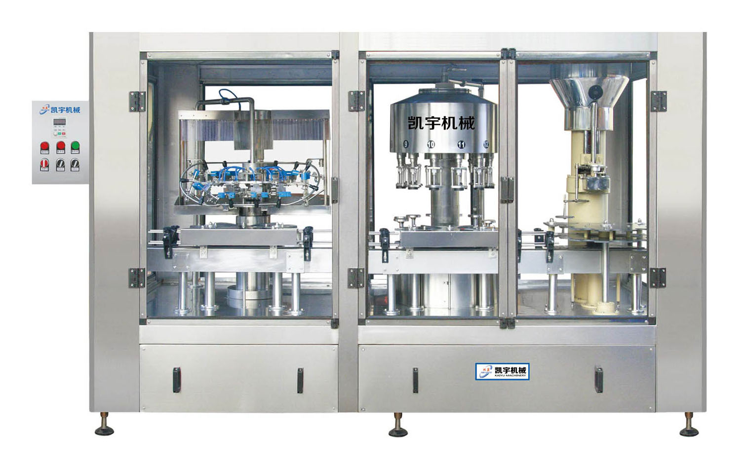 SYGZ-24-16-1型沖瓶灌裝打塞三聯機 三聯體機主要是為葡萄酒、果酒灌裝而設計的設備,本設備是將翻轉沖瓶機、負壓灌裝機、打塞機有 機組合為一體,設備結構緊湊,節省安裝空間 ...